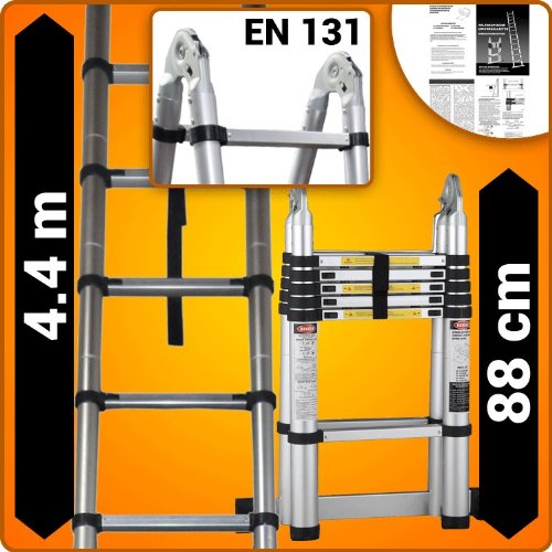 Ⓓ Echelle 4.4m Télescopique Aluminium Modulable Pliable Polyvalente Escabeau K4.4
