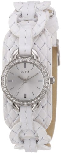 Ⓤ Guess - W70027L1 - Montre Femme - Quartz Analogique - Cadran Argent - Bracelet Cuir Blanc