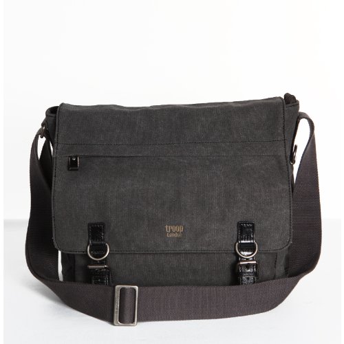 Ⓗ Handbag Queen UK - Grand sacoche noir unisexe sac ordinateur portable toile messager "Troop London" 2 boucles