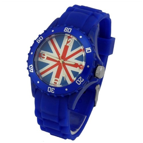 Ⓘ Montre Analogique Femme / Enfant - bracelet Silicone Bleu - Cadran Rond Fond Union Jack - Marque Chtime - UNION