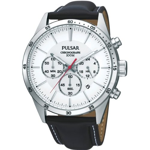 Ⓤ Pulsar Uhren - PT3007X1 - Montre Homme - Quartz Chronographe - Chronomètre - Bracelet Cuir Noir