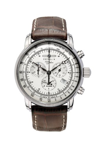 Ⓑ Zeppelin - 7680-1 - Montre Homme - Quartz Analogique - Alarme / Chronomètre - Bracelet Cuir Marron